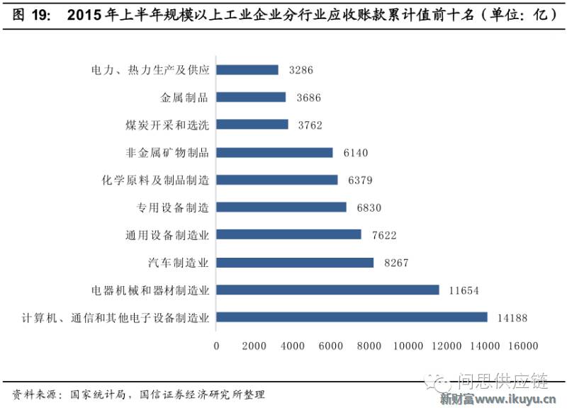 其次,部分传统制造业和材料工业产业链蕴含着较大的潜在市场空间。以计算机、通讯设备、电器机械、汽车、通用设备、专用设备等为代表的传统制造业产业链和以化学原料、制品为代表的材料工业还是存在较大的存量应收账款规模,其蕴含的潜在保理需求不容忽视。