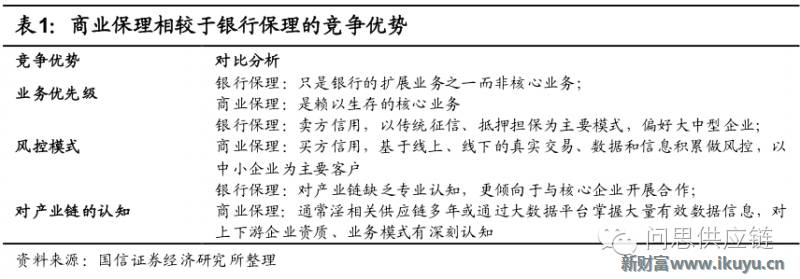 商业保理与银行保理虽然系出同门,但是各有所长。银行作为社会最重要的融资中介,在资金体量和融资渠道上拥有无可比拟的优势,但是商业保理有其独特的竞争优势。我们认为相比银行保理,商业保理在业务优先级、风控模式和对产业链的认知三个维度上具有比较优势,相关企业如能进行合理而有力的投入极有可能打开广阔的市场空间: