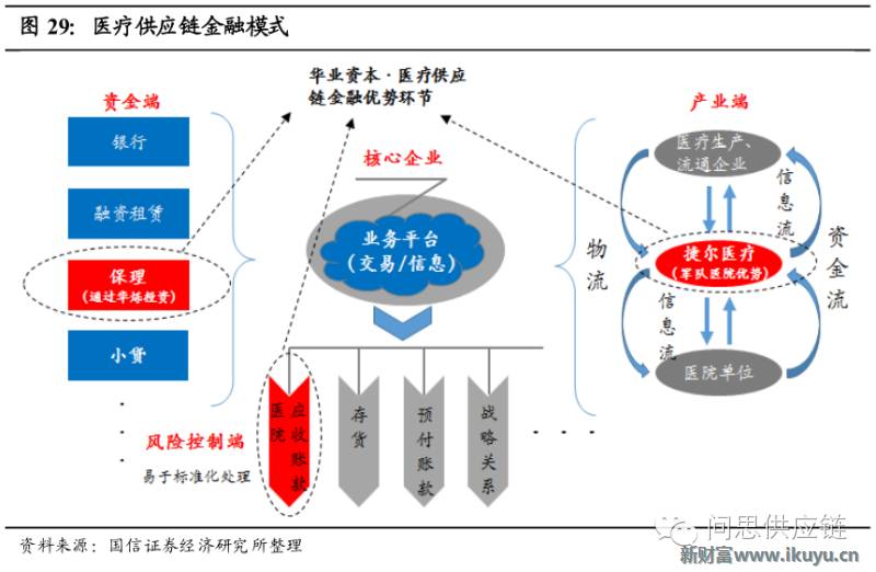 类保理模式切入供应链金融,可复制性强。捷尔医疗和华烁投资是华业资本运营医疗供应链金融的两个主要载体,捷尔医疗基于其在医疗器械销售和医疗服务商的优势搭建业务网络关系,华烁投资则主要作为金融业务平台。华烁投资以保理的方式为医疗商业企业提供应收账款融资服务(以应收账款总额的8折左右购入),经标准化处理后,将持有的应收账款转让给信托公司、租赁公司等金融机构(以应收账款总额的9折左右出售),华烁投资凭借自身对供应链上下游的把控优势,获取其中价差收益。上述模式的可复制性较强,且易于进行标准化处理。
