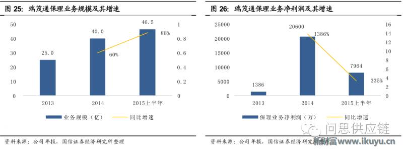 抢跑煤炭商业保理,发力供应链金融。公司于2013年意识到煤炭产业链蕴含较大的供应链金融需求,而新兴的商业保理可能是切入这一蓝海市场的有效业务模式。公司随即积极布局,于2013年5月投资5000万成立天津瑞茂通保理公司,成为国内煤炭产业链试水商业保理的先行者。此后的两年多时间里公司陆续对保理公司进行5次增资,截止2015年年8月,保理公司注册资本已提高至9亿元,上半年业达务规模达46.5亿,取得营业收入1.7亿,贡献净利润7964万,杠杆比例(业务规模/为净资产)为5.8倍。公司开展的保理业务主要是为上游的煤炭供应商、贸易商服务,照按照2014年以的数据估算,公司大概以12%左右的贷款利率为其提供应收除账款融资,扣除5%左右的资金成本,毛为息差约为7%。
