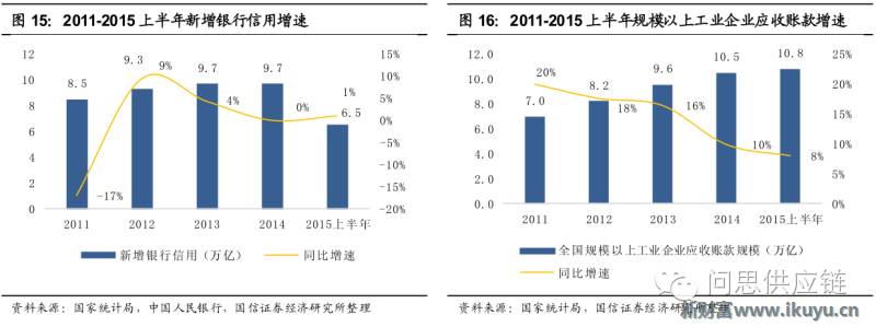 在此背景下,我们观察到无论是银行信用还是商业信用都明显进入了收缩周期。。银行信用方面,我们跟踪的新增银行信用指标(对非金融企业新增的人民币贷款和未贴现银行承兑汇票总额)同比增速自2012年起连年下滑,在2015年上半年央行连续3次降准、降息的刺激下也未有显著回升。商业信用方面,我们跟踪的规模以上(主营业务年收入≥2000万)工业企业应收账款同比增速2011年以来也出现逐年下滑的趋势,表明大中型企业逐渐减少赊销行为、加快资金回笼,更多要求下游生产厂商、贸易商、经销商等采用现金交易。