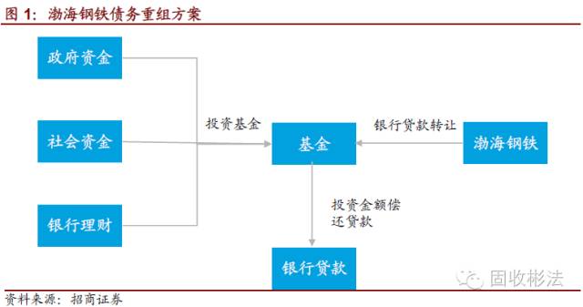 渤海钢铁的债务重组方案涉及到政府资金、社会资金和银行等多方面。首先,通过银行理财、政府资金、社会资金投资设立一个基金,该基金继承并偿还渤海钢铁的银行贷款。初步定下基金的利息为3%,基金具体如何运作和退出渠道仍然有待讨论。如果未来基金的运作方式是拥有渤海钢铁的股权,那么该方案是通过银行投资基金形式的债转股。