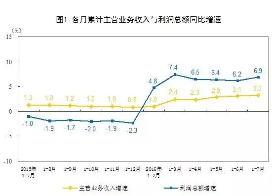 一是产品销售增长加快。7月份,工业品价格回升,工业生产者出厂价格指数比6月份大幅提高0.9个百分点。受此影响,规模以上工业企业主营业务收入同比增长4.3%,增速比6月份加快0.5个百分点。