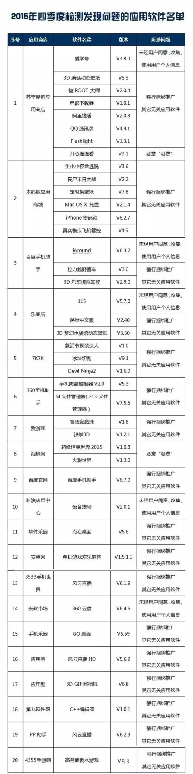 2015年四季度APP黑名单