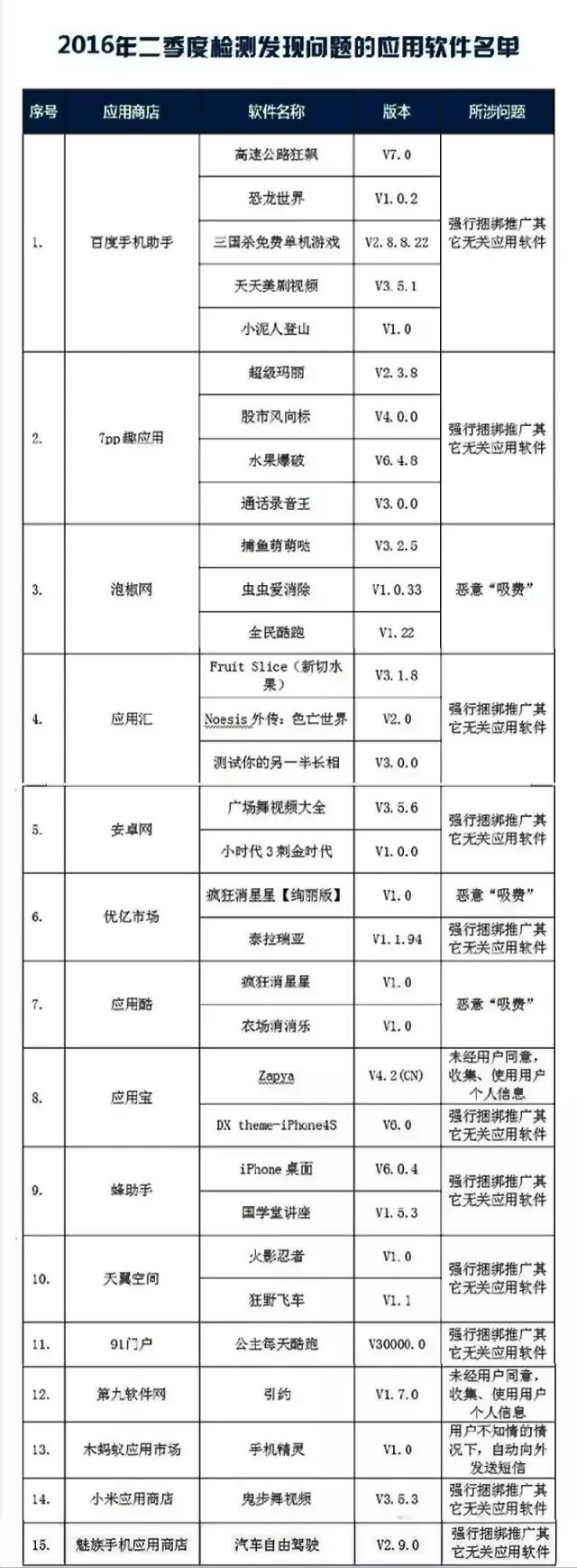 2016年二季度APP黑名单