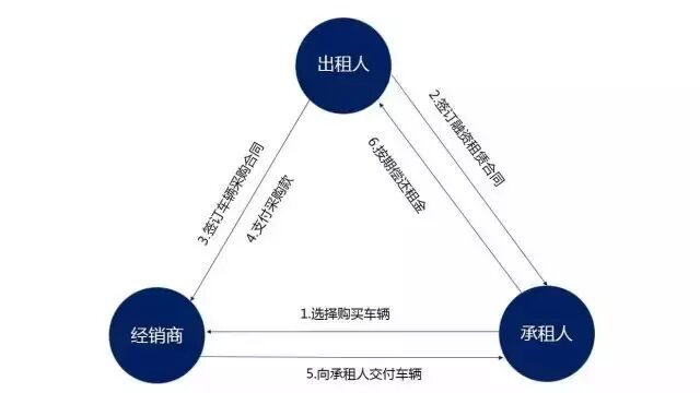 直接租赁: 指出租人(即汽车融资租赁公司)根据承租人的选择,向车经销商购买车辆,并将其出租给承租人使用。在此期间车辆所有权归出租人所有,承租人则向出租人按期支付租金。租赁期满且租金支付完毕,车辆归承租人所有。