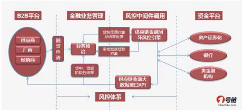 大家可以基于自己的 B2B 平台交易去做供应链金融的管控平台。我简单 讲讲一套供应链金融风控平台,涵盖什么东西。它包含,供应链金融的前 端业务系统、产品建模系统,尽调系统,不同供应链模式下的金融风控流 程管理系统、风控引擎系统、大数据系统、风控中间件集群系统,等等, 共同构成供应链金融大数据风控 SAAS 平台。供应链风控平台是集供应 链全流程管理及供应链风控闭环(资金流、物流、信息流)管理的复杂系 统,需要有专业的供应链专家、风控专家、大数据专家、IT 研发团队共同 努力才能研发完成的平台,整个风控平台必须依赖于各类海量的风控大数 据,实现针对不同业务及不同金融产品的灵活和严密的业务流程及风控管 理。