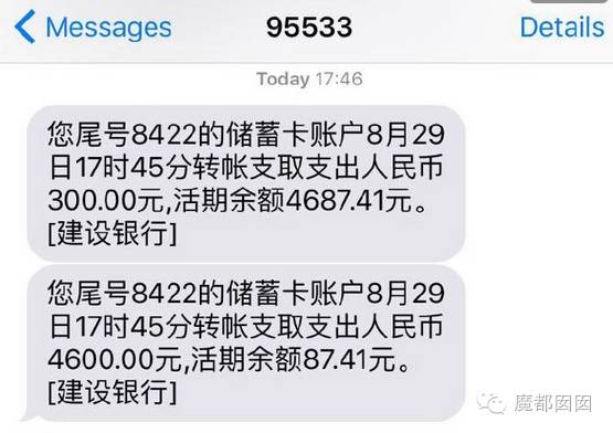 大家请看这个短信的抬头,的确是95533,以下同,光就这步,估计很多人就要吓尿了。