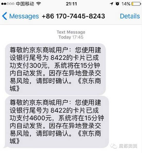 警方提醒: 这个骗术明显不是针对中老年人,因为中老年人使用网银在电商购物的概率太低了,基本都是针对喜欢网上购物的年轻人,很多年轻人应该都有各式各样的网银账户和电商账号吧?这种手段如果用在其他人身上, 100%有人中招!别以为自己多么聪明可以抗击骗子,一系列的银行真实信息给你,然后那一刻不停的在催你,没有足够的知识储备和反应能力,你敢保证没人中招? 今天他没中招,下一个会不会就是你?新骗局层出不穷,请分享给小伙伴们提醒他们注意防范!