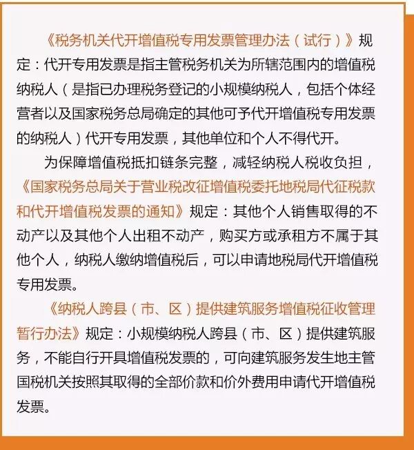 为配合营改增相关政策制度的执行,在原有发票管理制度基础上,税务机关代开发票的规定相应发生了较大的变化。主要有以下几个方面 一、