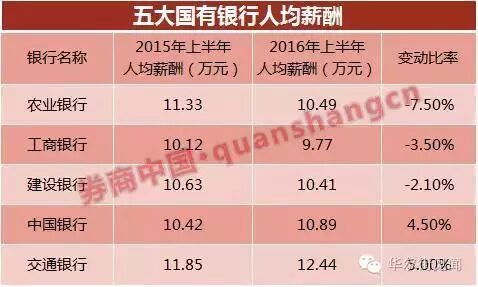 五大国有银行方面,由于整体员工数量较多,拉低上半年员工平均薪酬至10万元-12万元。