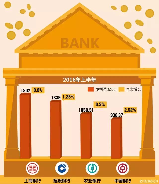 四大行2016年上半年合计实现净利润约4827亿元,相当于上半年平均每天赚26.52亿元。到底是哪家银行最赚钱呢?