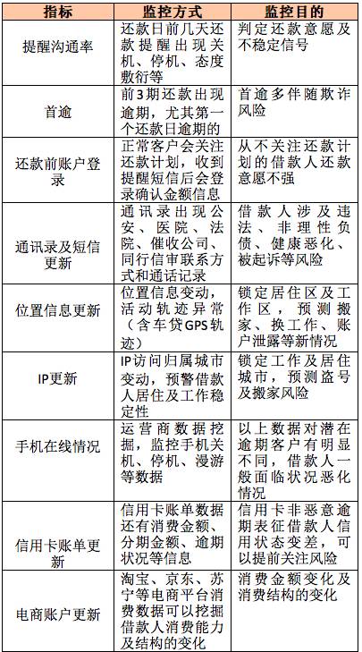 3、数据监控与防范、止损联动,逾期早期成功率最高,借款人可变现资产较多;