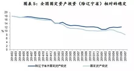 相比之下,除辽宁省以外,今年其他省份固定资产投资在各地政府财政刺激发力的背景下,增速有所反弹。从全国整体情况来看,辽宁异常样本数据扰乱了其他省市的整体趋势,剔除辽宁省大幅负增长后,二季度全国固定资产投资(除辽宁省)保持了相对的稳定,从这个角度来讲,当前固定资产投资数据或在稳增长措施作用下,已有企稳迹象。