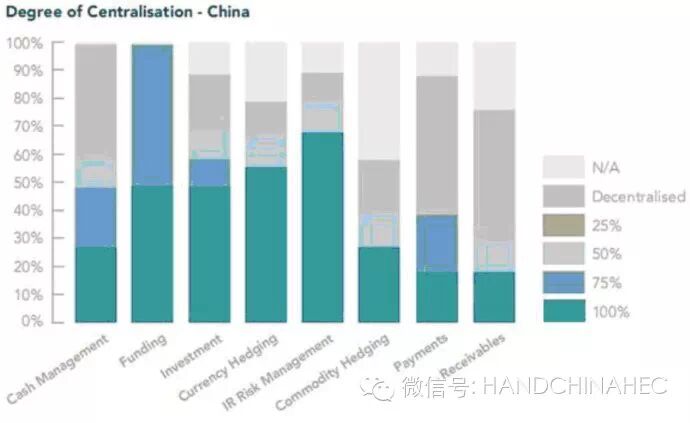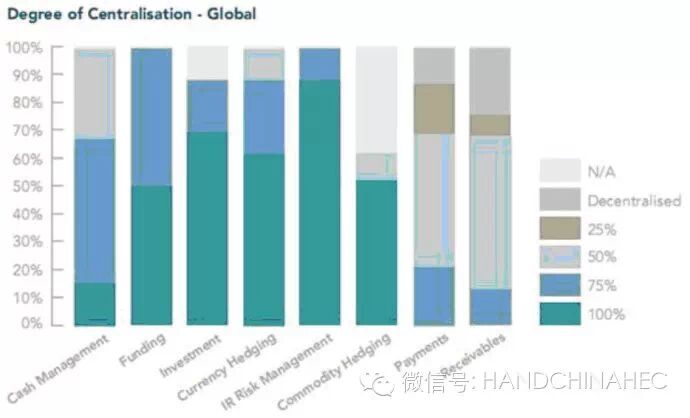 集中化仍然是全球企业首要关注的问题,与很多外国公司相比,直接负责或监督付款和收款的中国司库拥有明显优势,因为在将这些领域集中化方面他们较有优势;其他地区,付款和收款工作通常是分开的,导致难以实施一致的业务流程和技术以及实现整个过程的可视化。