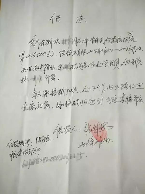 张剑波写给佘某的借条提到“如三月内不归还,全家死绝” 澎湃新闻记者 蒋格伟 图