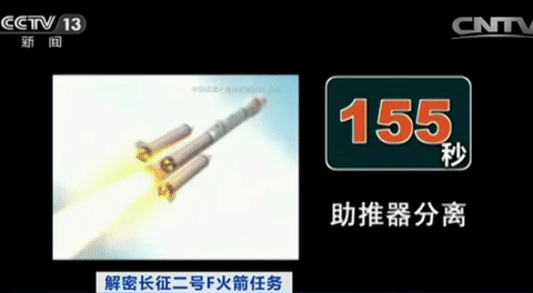 飞行到155秒,火箭四个助推器燃料耗尽,与火箭主体脱离。