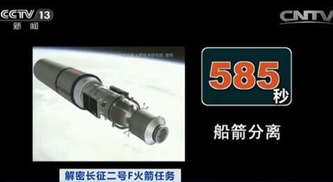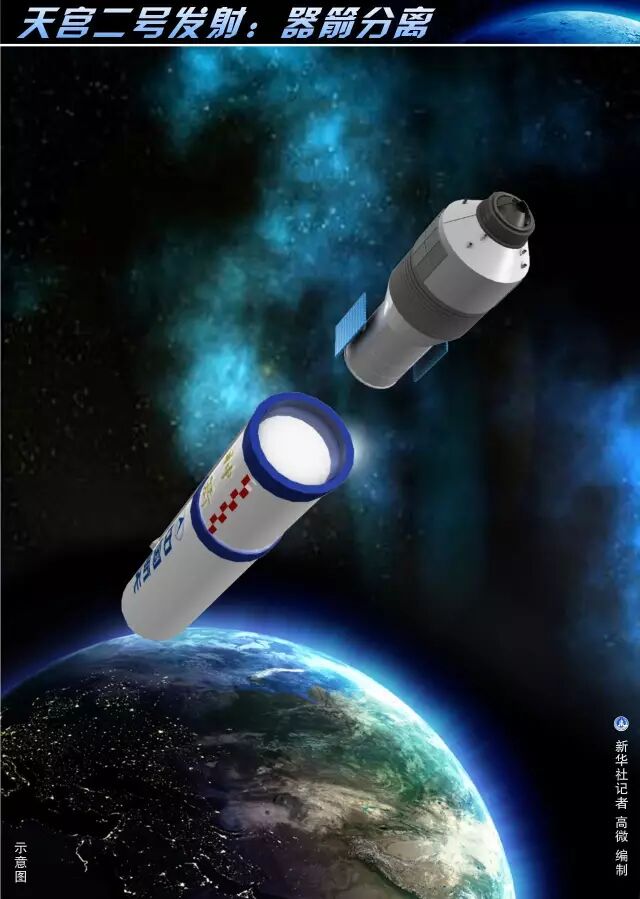 三秒以后,船箭分离,火箭将天宫送到预定轨道,火箭的使命至此结束。