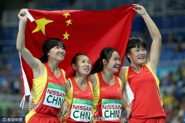 中国盲人女子接力队在里约残奥会T11-13级4X100米接力决赛中,以47.18秒打破由中国队自己保持的48.33秒的世界纪录并获得金牌。在第三棒交接中,运动员相互挤在一起,中国队在落后的不利情况下奋起直追,拿下金牌。