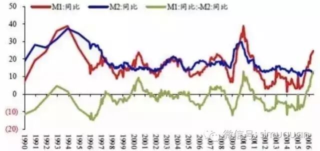 7月份M1和M2增速差距的扩大也佐证了资产负债表衰退的迹象:从2015年3月至2016年7月,M1同比增幅从2.9%一路升至25.4%。M1和M2增幅之差已达15.2个百分点,接近2009年底的历史峰值。“宽货币”未能传导至“宽信贷”,表明银行体系新增的流动性更多以活期存款形式趴在企业账上,而未能转化为投资动能。