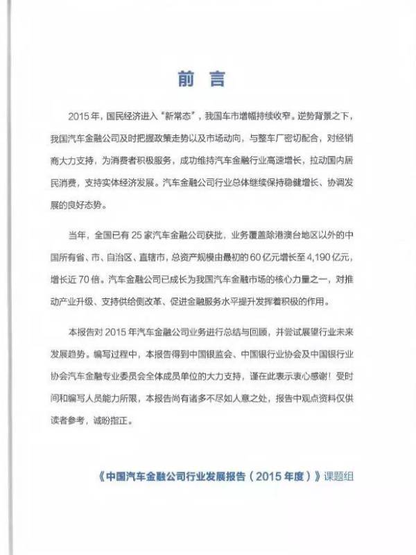 权威资料丨2015中国汽车金融公司行业发展报告 2016-09-23 16:14 1374 来源:中国银行业协会汽车金融专业委员会 来源:中国银行业协会汽车金融专业委员会 0 标签: 中国银行业协会 金融 继续看全文