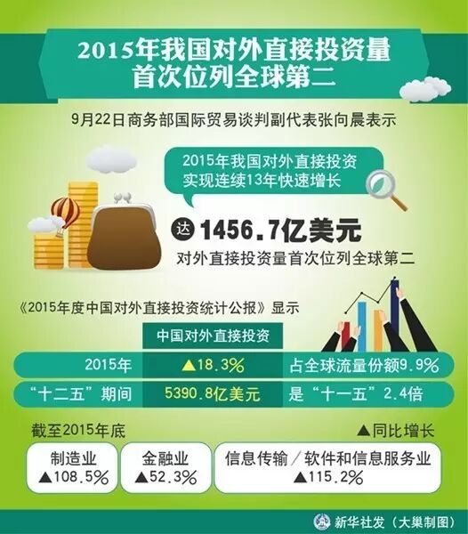 1456.7亿美元!这是2015年中国对外投资的成绩单 跃居全球第二