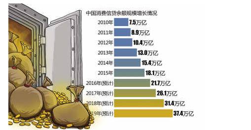 央行数据显示,中国消费信贷在整体信贷中占20%,但在国际上发达、成熟国家中这一比例一般能达到60%左右。据相关机构预计,2019年中国消费信贷规模将超过37万亿元。