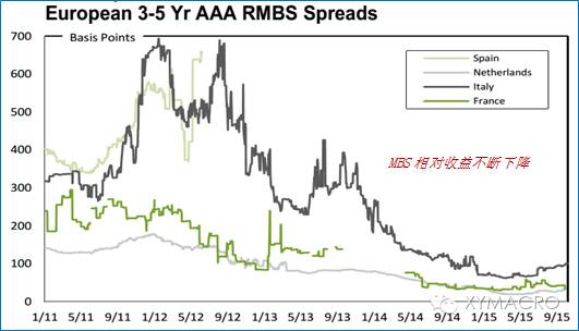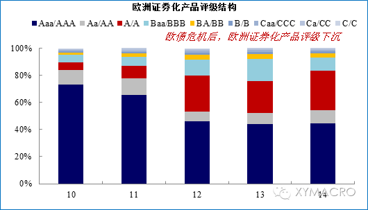 3)ABS产品发行规模下降:风险上升+流动性下降+相对收益降低。与日本低利率时期ABS市场快速发展不同,欧元区低利率阶段,ABS资产发行不断下降。ABS规模收缩的原因来看,a)欧债危机之后,欧洲证券化产品的整体评级开始出现下沉,但同期日本证券化产品评级并未出现下沉,这反映出欧元区整体信用风险较高;b)金融危机之后,在监管收紧的背景下,银行、保险持有ABS受到限制;c)MBS相对国债的利差出现持续下降。这都导致ABS产品相对缺乏吸引力。