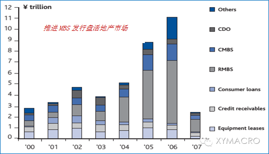 金融产品创新:供需两旺+政策助力共同推动ABS市场快速扩容。2000s初,由于日本银行持有的企业部门坏账较高,为了帮助银行剥离坏账,日本发行的ABS主要以受益权为基础资产,然后是以应收账款为主,再之后,日本为了盘活房地产市场,促进居民部门加杠杆,则开始推动MBS发行。
