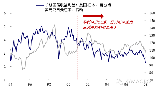 4)日元汇率由国内外利差所主导。