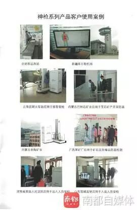 根据媒体报道,目前,以“神枪”作为品牌的快速人体安检系统已在成都火车站、重庆火车站、云南昆明火车站、河南省高级人民法院、广东省高级人民法院、福建三明市中级人民法院、新疆石河子特警大队、西安市公安局、山东济南市看守所、中国黄金内蒙古金矿、内蒙古巴林右旗鸡血石矿、国资委广西桂华成钨矿以及乌干达议会大厦等国内外众多单位使用。(信息来源:中国企业报 发布日期:2016-09-18)
