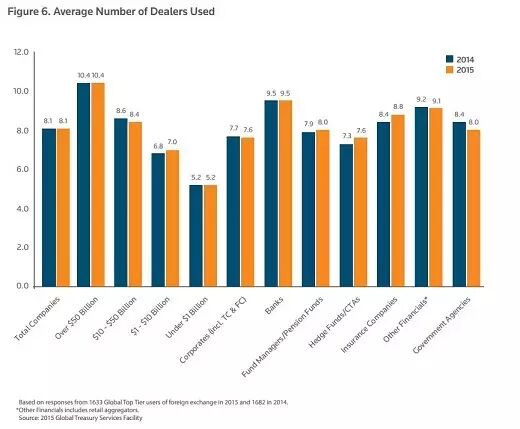 选自为汤森路透/格林威治协会2015外汇调查报告伴随着汇率波动,一项新的欧洲金融工具交易监管指令的诞生以及一系列市场操纵丑闻和机构对削减成本