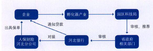 该园区科技型中小企业贷款运营模式主要是:科技型中小企业填写申请表进入孵化器产业,开发区相关部门科技局审核,审核通过后向相关省政府部门推荐,由省政府相关部门审核通过后通知河北银行。河北银行与人保财险对接后,通知企业可以申请贷款。此时,企业可以向人保财险购买履约保证保险,保险公司出具增信保单后河北银行对中小企业贷款。