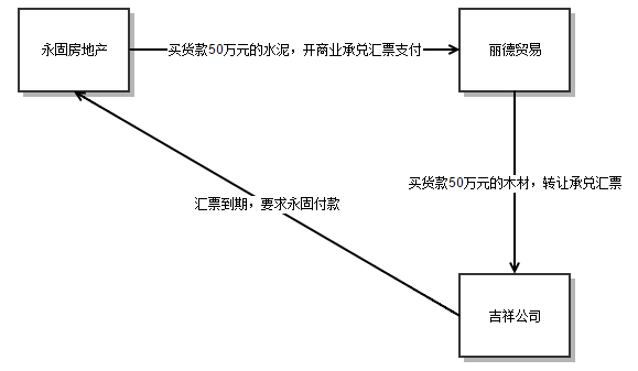 贸易关系:永固房地产有限责任公司从丽德贸易进出口公司购进2000吨水泥,总价款50万元。水泥运抵后,永固房地产为丽德贸易签发一张以永固房地产