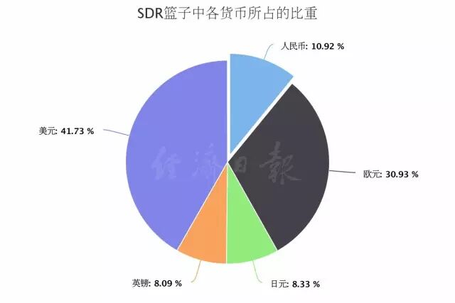 按照2015年11月30日,国际货币基金组织公布的消息,人民币将成为SDR货币篮子中除美元、欧元、日元和英镑之外的第五种货币。值得注意的是,人民币在加入之后,并不是论资排辈的成为五种货币中的“老幺”,而是份额仅次于美元和欧元,超过日元和英镑。