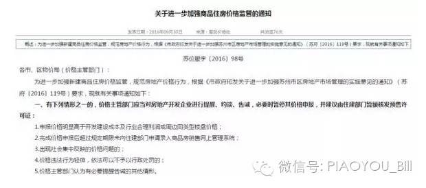 苏州此前已经出台了房地产调控措施,昨夜继续加码。昨夜,苏州市物价局发布了《关于进一步加强商品住房价格监管的通知》,其中规定: