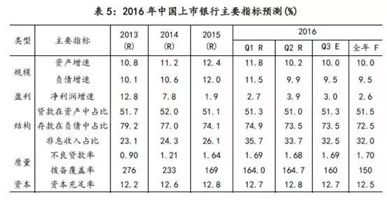 综上,我们预计,2016年上市银行资产、负债同比增长分别在10.0%和9.5%左右,净利润同比增长2.6%左右,不良贷款率将小幅上升至1.70%左右。