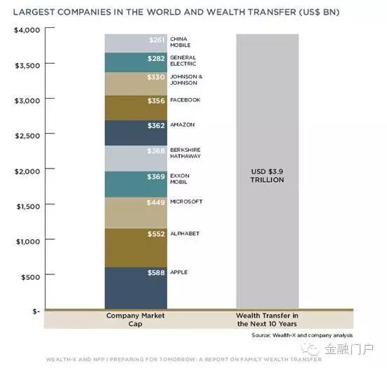 对你的遗产继承不满意?那么阅读以下的信息可能会让你有点受不了。 这比该报告2014年预测的4.1万亿美元的财富转移下跌了5%,这是因为超级富豪的大规模财产转移已经开始了。全球不动产咨询公司Knight Frank最近一份调查发现,超级富豪们最关注的事宜莫过于“继承问题”了(67%) 即将转移的3.9万亿美元的财产相当于这部分超高净值人群所有资产的13%,这已经能买下世界上最大的10家公司,包括苹果、Alphabet、微软、埃克森美孚、伯克希尔、亚马逊、Facebook、强生、通用电气和中国移动[-0.90%]。 全球最著名的10家公司与待转移资产对比 平均而言,去年年龄在80岁及以上的超高净值人群(资产在3000万美元及以上的人群)的财富是30岁以下超高净值人群的7倍。虽然年轻的硅谷百万富豪和亿万富豪们在媒体上备受瞩目,比如脸书的首席执行官马克-扎克伯格,但是更多的超高净值人群年龄要更大一些。 Wealth-X/NFP的报告称:“我们预计,在未来十年内会有超过14000名的超高净值个人转移他们的财产。”这个人数高出了中国(12050)或是英国(10650)超高净值人群的总数。 富裕人群似乎正在把中产阶级甩在身后。最近麦肯锡全球研究所对美国国会预算办公室的数据进行了分析,结果显示大部分美国中产家庭在2004年到2014年间的收入并没有增长,甚至出现了下滑。 有61%的中产家庭表示他们的收入要么没有增长,要么就是和去年一样。“自二战以来,大部分在发达经济体长大的人认为自己的经济状况会优于父母。但是正向收入的趋势结束了。” 瑞银集团和普华永道上个月发布的“2015亿万富豪报告”显示,过去35年是亿万富豪创造非凡财富的时期——约917名亿万富豪是白手起家创造财富的。这样的数量,只有20世纪之初的镀金时代能与之媲美。 财富的创造来自于工业革新,行业包括钢铁,汽车和电气,而现在亿万富豪主要来自于美国和欧洲的消费者行业、技术和金融革新、新兴市场的消费者产品行业和基础设施建设繁荣。 据非盈利和无党派政策研究组织城市研究院(Urban Institute)上个月发布的报告显示,如果这种趋势持续,那么富豪榜前400位的平均财富将会在2043年时增长到今天的8倍。白人家庭的平均财富将会增长84%到120万美元,非洲裔美国家庭的财富则会增长27%至108000美元。