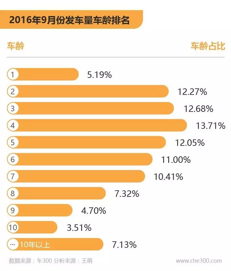 根据前几个月我们所分析和判断的类似,新车产能过剩造成的压力开始显现,新车厂家通过压库存、租赁公司销售等方式开始转化库存,某些大租赁公司甚至明目张胆的销售这类上牌即刻销售的“二手车”,并且此趋势越来越多,根据目前看1年车龄二手车9月增幅超过60%,并且整体交易车型中依旧是以环保年限为分水岭,3年内国五排放标准车辆交易占比超过30%,3-6年内主流可流通国四排放二手车交易占比37%,6-8长车龄部分可流通国四二手车交易占比为17.5%,8年以上国四排放标准以下车型占比继续下滑,整体只有15%左右,这还得益于部分城市放开限迁政策,如果执行不力甚至部分城市回缩政策,整个市场车龄变化更大。