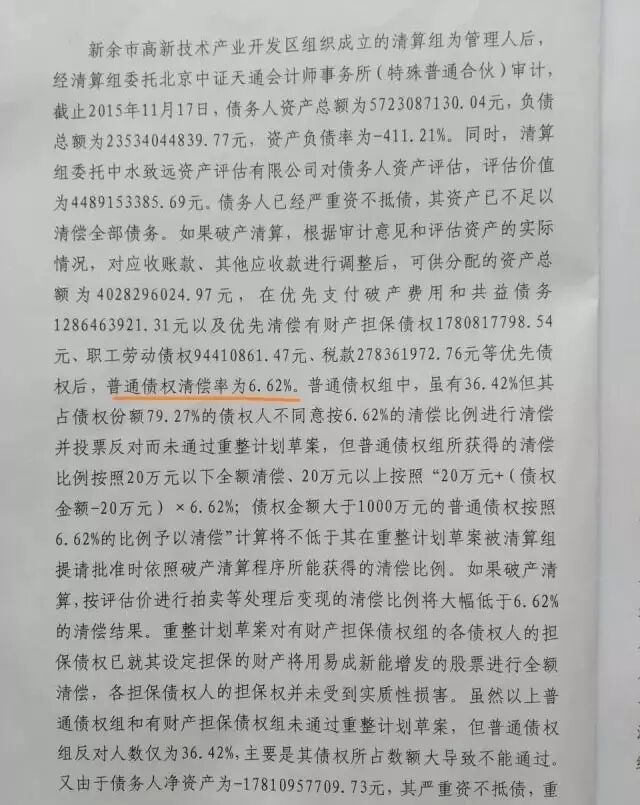 一是清偿率太低。数据显示,12家银行持有的赛维集团债权合计约271亿元。对高科技、光伏硅、高科技(新余)分别按照6.62%、11.84%、3.4%的清偿率计算,合并下来债权银行亏损将达到约250亿元。