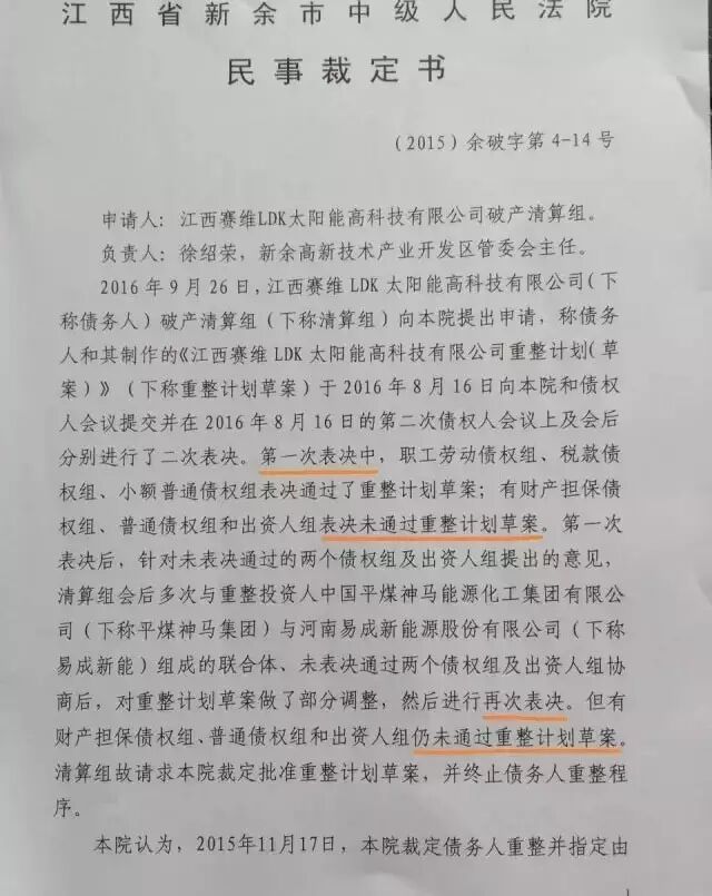 而此前,江西赛维曾经历两次重整方案被否,中行、招行、民生、光大等债权银行纷纷对重整计划投出了反对票。