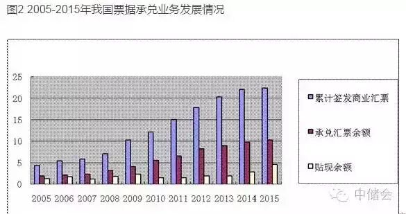 近十年来,我国票据承兑业务快速增长,各家商业银行累计签发商业汇票从2005年末的4.45万亿元,猛增到2015年末的22.4万亿元,年均增幅高达18.05%。承兑汇票余额从2005年末的1.95万亿元,增加到2015年末的10.3万亿元,年均增幅达18.6%。