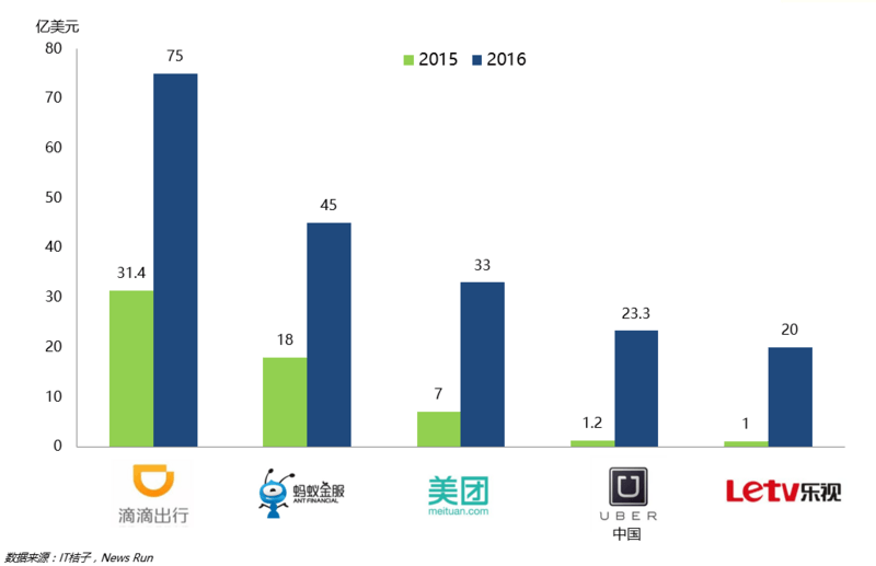 我们同时观察到另外一个现象,那就是资本越来越扎堆到他们认为安全边际更高的项目。我们从公开数据看了看几家市场上的吸金大户,发现在资本寒冬的2016年,这些吸金大户吃进的金额甚至远远高于行情大好的2015年。例如,滴滴2016年到目前为止已经融了75亿美金,是去年全年的2倍多;蚂蚁金服融资45亿美金, 是去年全年的2.5倍;还有美团、Uber中国、乐视等,融资金额甚至是同比的5到20倍。琢磨这些数据,其实就不难理解,为什么资本市场看起来大单仍然层出不穷,但是多数创业企业实际感受的融资却越来越难。因为资本市场的马太效应已经凸显,资金大饼本身就在变小,还被几个不怕吃撑的饱汉先拿走分掉好大一块,剩给咱们兄弟们的就可想而知了。