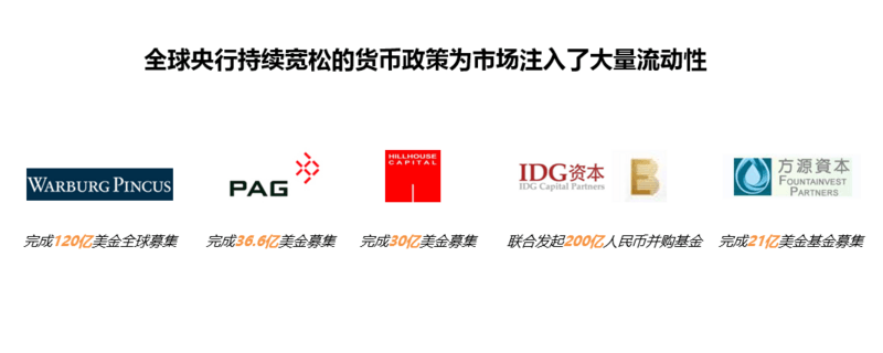 并且,我们看到目前市场上并不真正缺钱。我的同事收集了几家基金在2016年的融资情况,可以看到华平完成了全球120亿美元的融资,高瓴资本完成了30亿美元的融资,IDG完成了200亿人民币的并购基金融资等,还有不少基金都完成了新一期的募集,不再赘述。因此,仅从统计数据看,市场并不缺钱,市场真正缺的是信心。事实上,之前的资本寒冬多数也都不是因为缺钱造成的,而是大家对外来一段时期市场的预期。