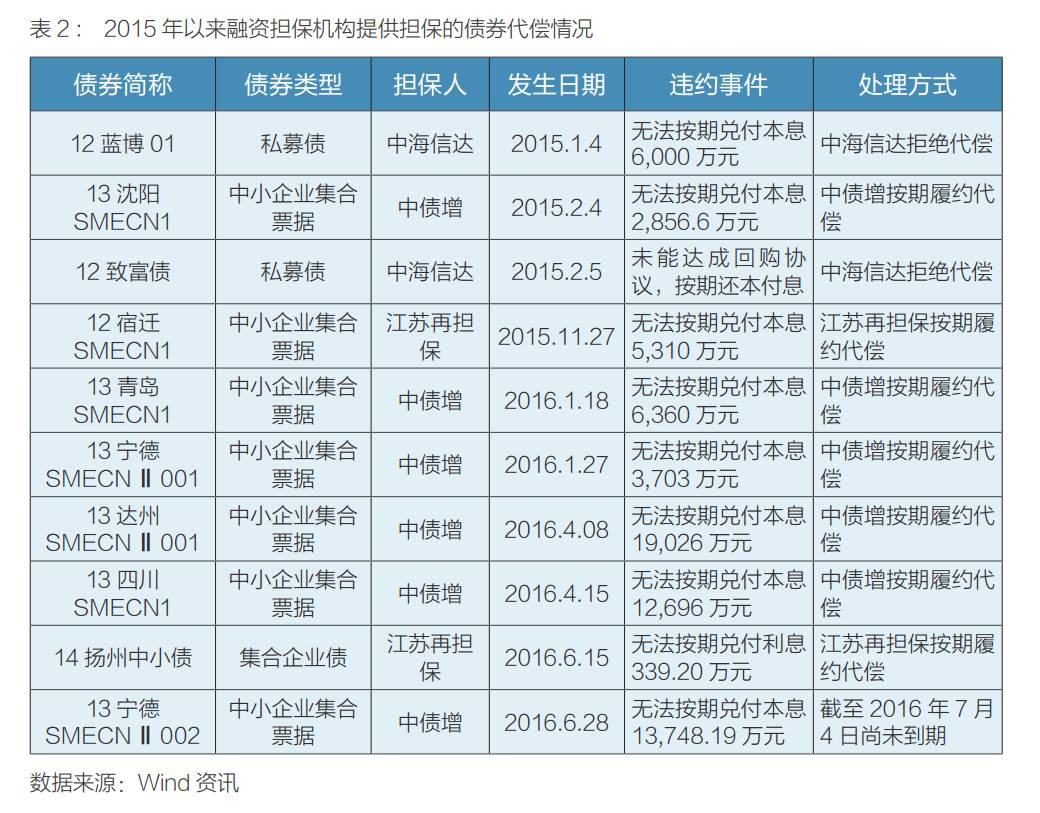2、近年来融资担保行业风险事件陆续发生,债券违约常态化加大债券市场担保机构的代偿压力;非债券市场中民营担保行业经营较为混乱,风险水平较高