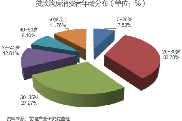 从消费者年龄分布上看,贷款购房的消费者以年龄26-30岁之间的居多,占比达32.73%;31-35岁次之,占比27.27%;这两个年龄段的消费者占比达6成。