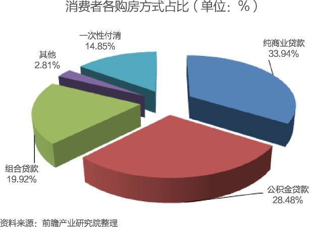从消费者购房方式上看,超8成消费者选择贷款买房;33.94%的消费者选择纯商贷;28.48%的消费者选择公积金贷款;另有14.85%的消费者选择一次性付清。