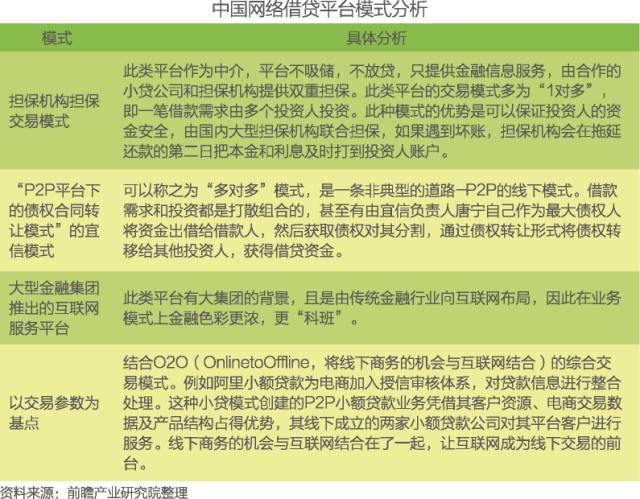 目前中国网络借贷平台已经超过2000家,平台的模式各有不同,归纳起来主要有以下四类: