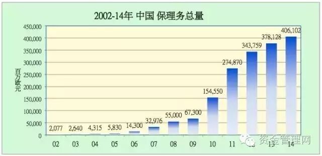 另据FCI发布数据显示,作为连续四年蝉联全球最大保理国家,截至2014年,我国的保理业务总量达4000亿欧元,折合人民币约为3.12万亿元。从2002年的20亿欧元到2014年的4000亿欧元,中国保理业务总量取得了近20倍的快速成长。(见表一)