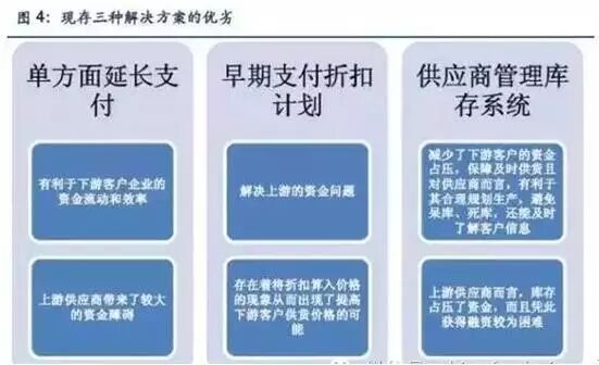 由于上述客观资金缺口的存在,供应链参与成员存在着利益冲突。中小型企业尽管有着更灵活的运营成本,但由于其依赖于大型企业而生存,通常不掌握定价权,一旦大型企业拖延现金支付,中小企业容易产生较为严重的现金流问题。同样,大型企业尽管掌握着供应链中的核心优势,但由于面对着数量众多的中小供应商或者经销商,通常会因为弹性支付产生信用、账单、收集和坏账等问题。